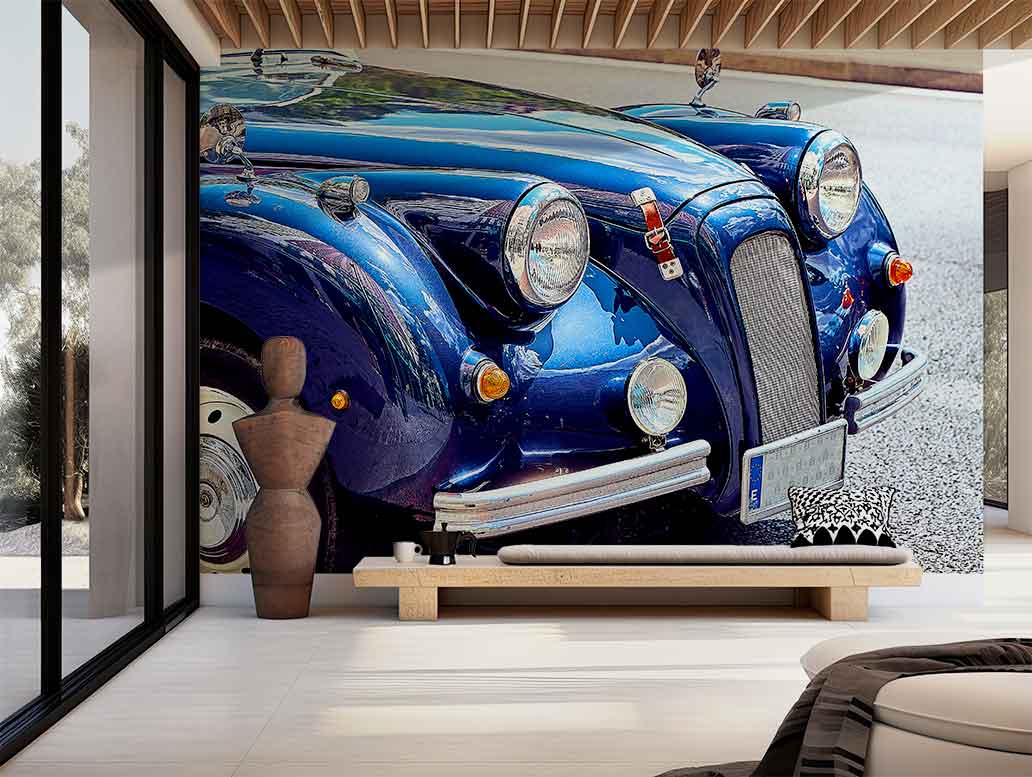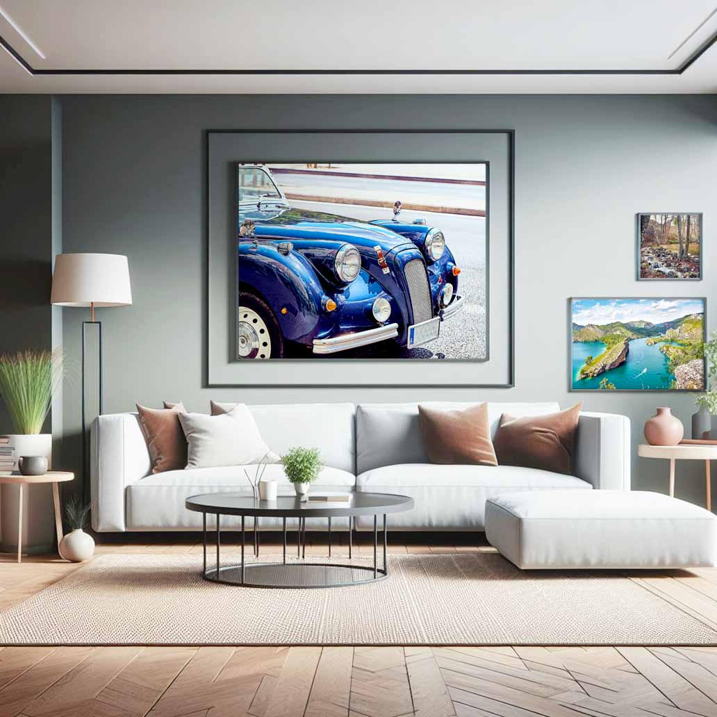 Elegance on wheels: this metallic blue Hurtan shines brightly. A luxurious photograph that captures the exceptional quality and appeal of a true automotive classic. A gift for classic car lovers!