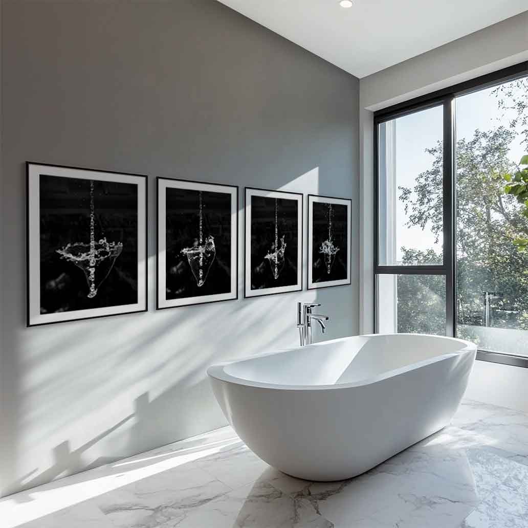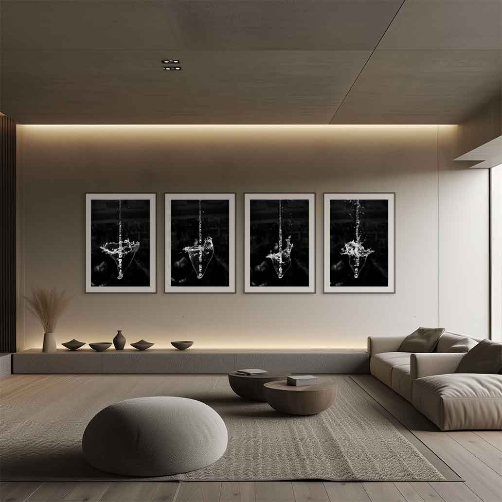 Enjoy the shapes of water with these artistic black and white photographs showing the top of a jet of water inverted in a sequence that creates a hypnotic moment. Ideal for modern settings. Inspire your mind!