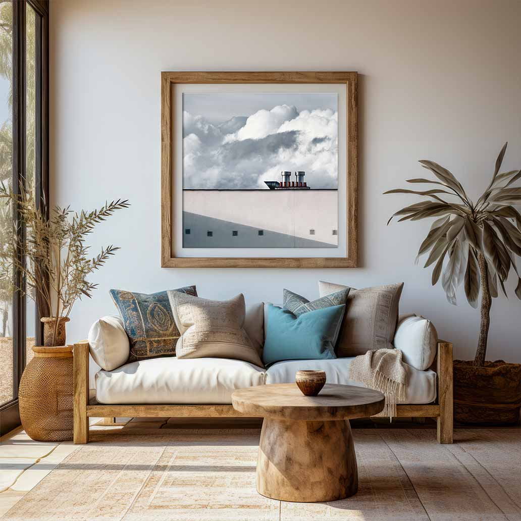 Photograph of what appears to be a boat sailing across the rooftops of my neighborhood. A very special view for your favorite spot or new project.