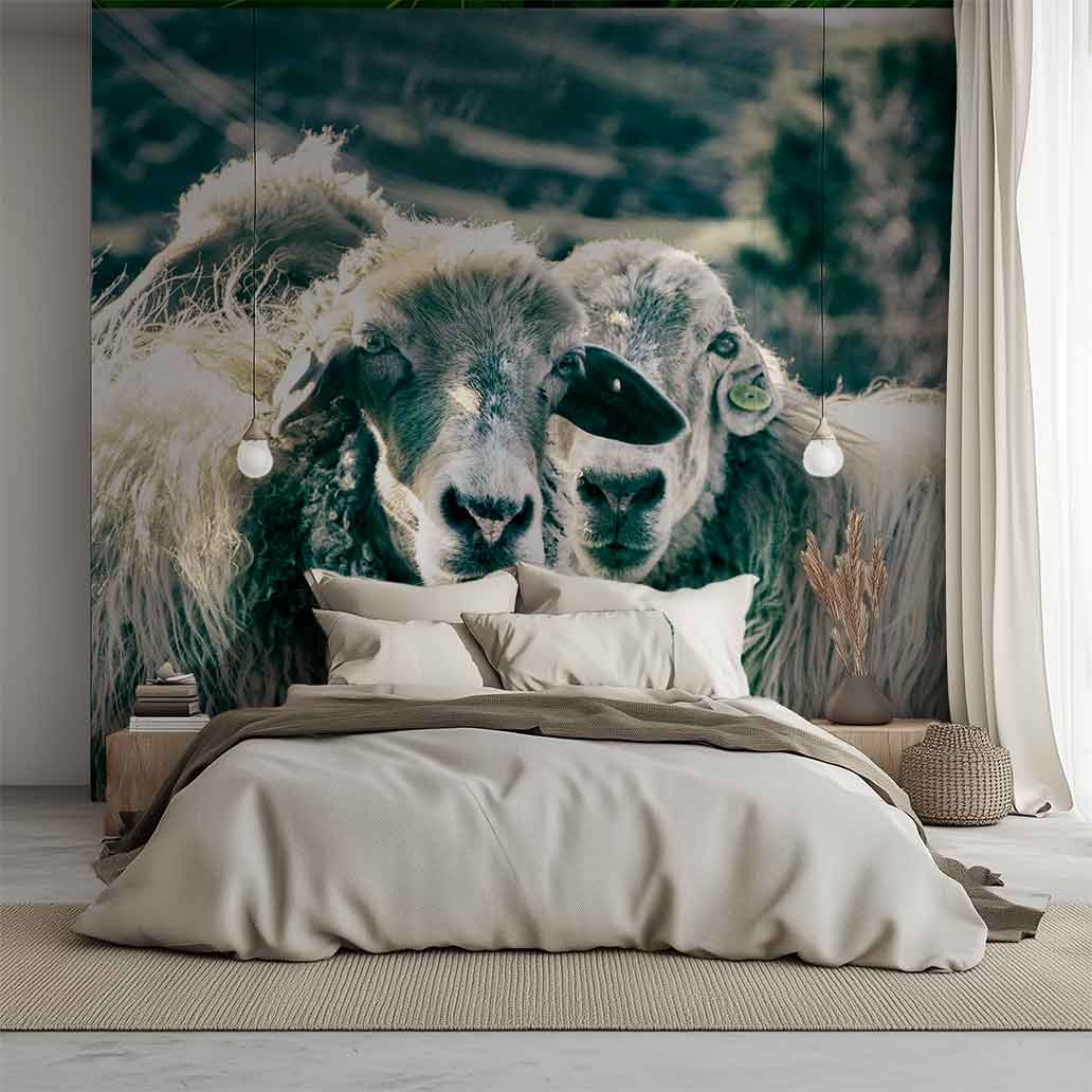 Who’s looking after whom? Discover the enigmatic gaze of these two sheep, who seem to be posing for the camera. Their eyes question you, conveying a sense of curiosity and protection. A unique encounter!