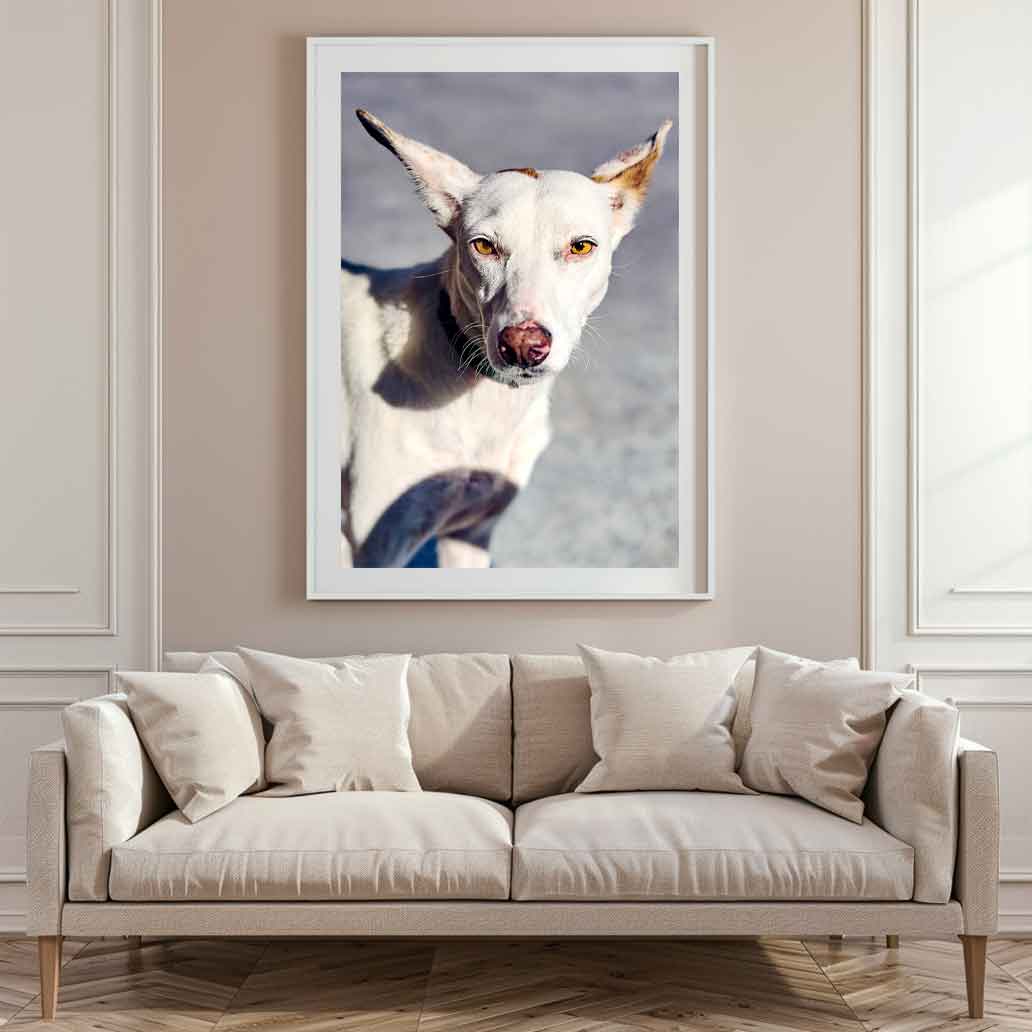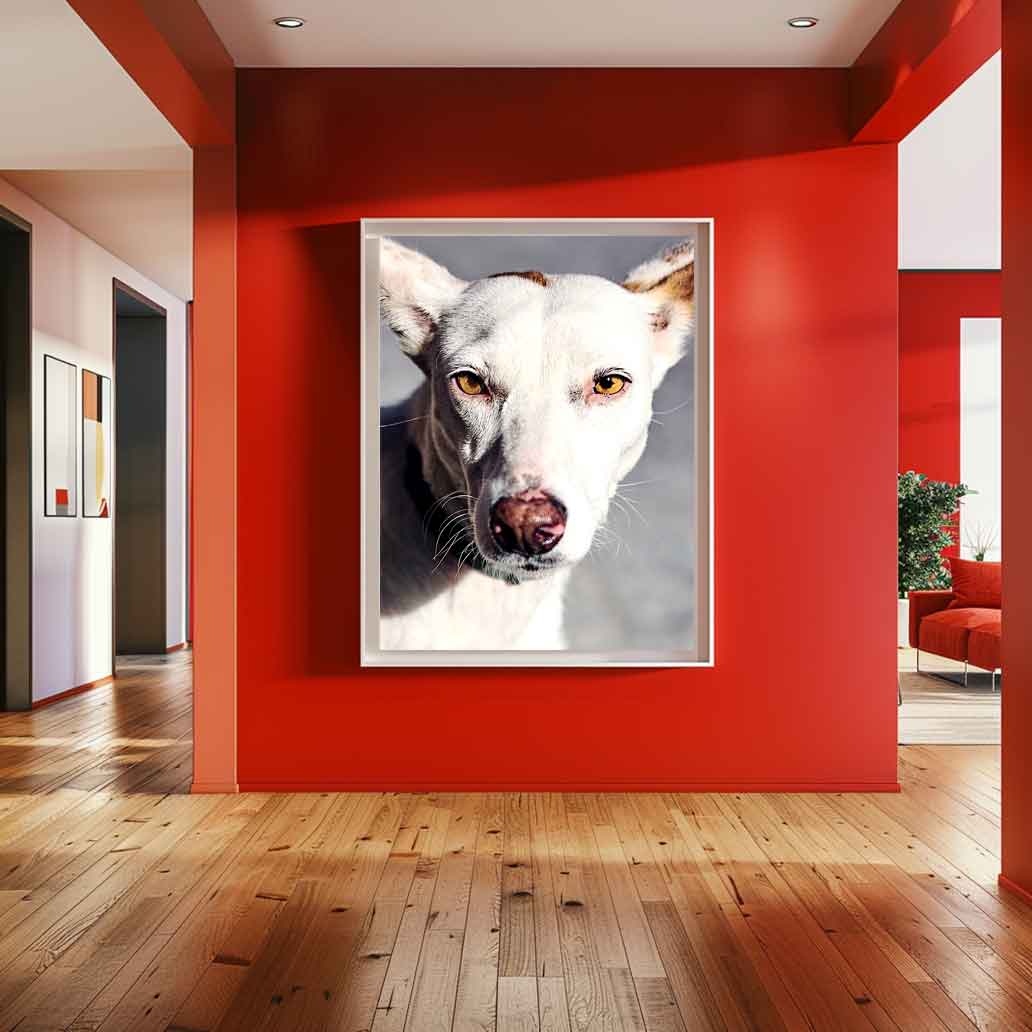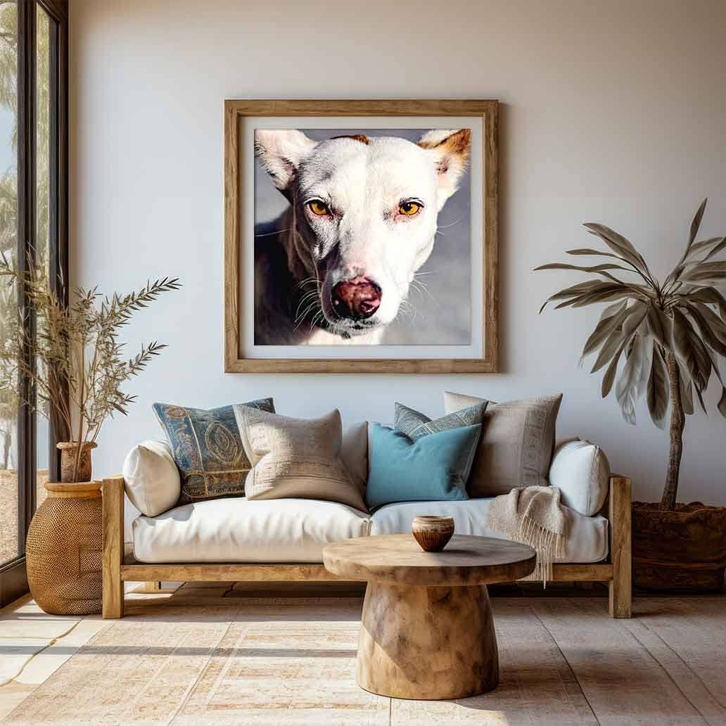 A photograph of a dog that captures an expression in his eyes that will make you feel an intense connection. Enjoy this photograph in your favorite project or space.