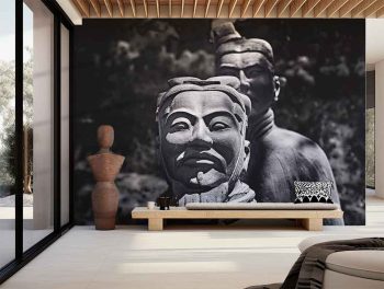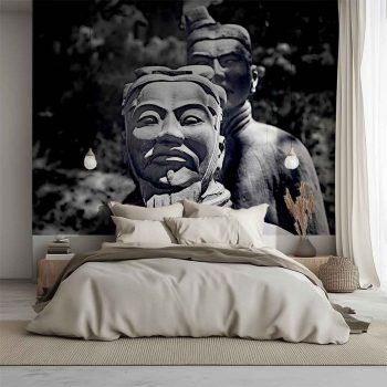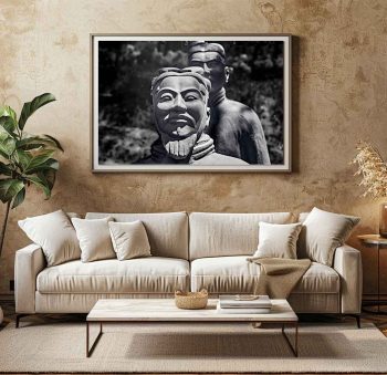 An encounter with living history: the face of a Terracotta Warrior looking back at you from time. This black and white photograph from ancient China invites you to a profound connection with an ancient legacy.