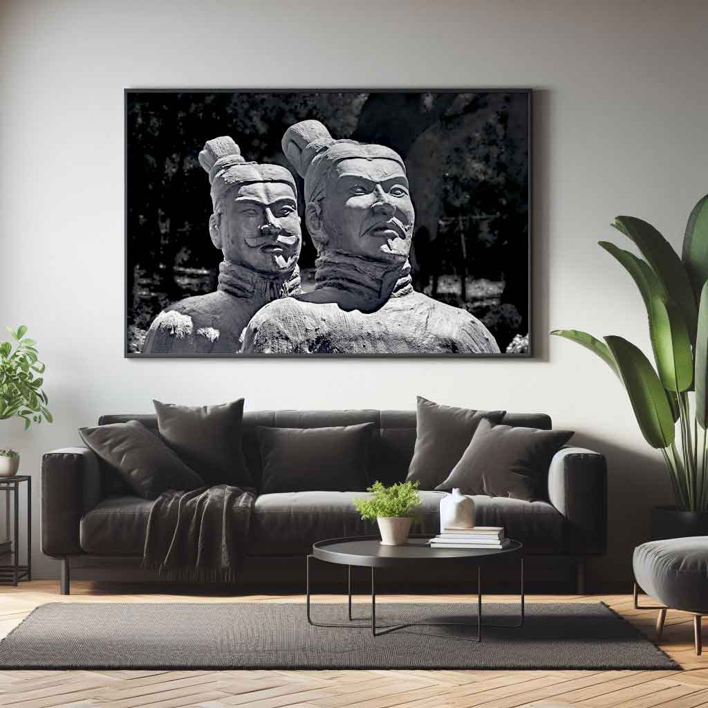 Discover China’s immortal legacy in this black and white photograph of two Terracotta Warriors. A stunning image, full of history, magnitude, and the power of a civilization. Perfect for art and history lovers.