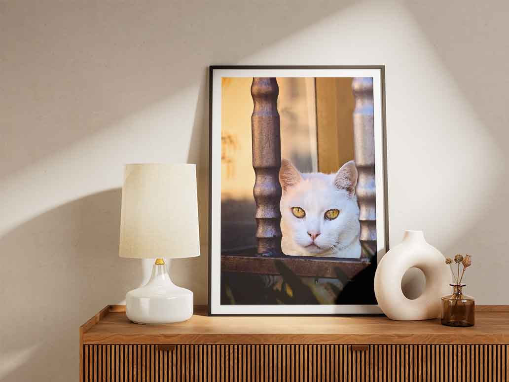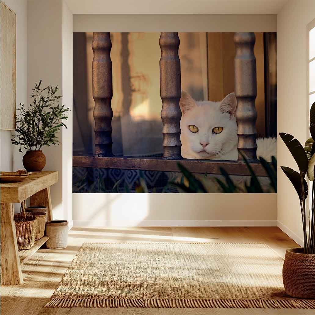 En esta fotografía, la atracción principal es la silueta de la cara del gato mimetizado con la reja. El contraste de los tonos del atardecer y el gris perlado de los barrotes dirige la atención a esa mirada encajada entre el metal. Como fotógrafo profesional, busco que esta geometría visual aporte una fuerza única a la obra. Es una pieza de fotografía de viajes urbano pensada para una impresión de fotografías de alta calidad, donde el blanco del gato resalta sobre la estructura con una limpieza absoluta. Una obra Fine Art que no pasa desapercibida.