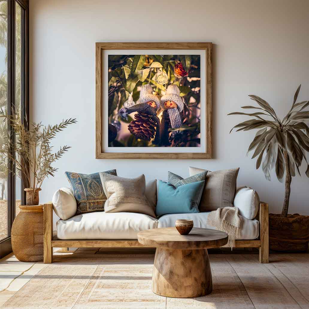 Esta fotografía Fine Art es mi celebración personal de la alegría navideña. La luz suave, filtrada entre las ramas, resalta las texturas cálidas y el sentimiento entrañable de la escena. Como fotógrafo, creo que esta fotografía es ideal para crear una atmósfera acogedora en tu hogar. Transfórmala en una impresión de fotografía de lujo para un regalo inolvidable o para una decoración moderna.