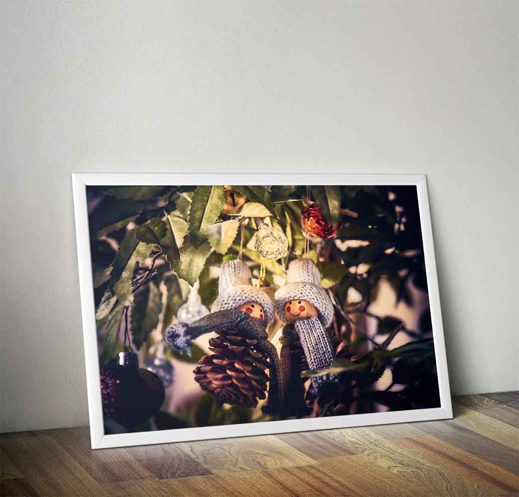 Explora esta fotografía navideña artística que evoca el espíritu más cálido y acogedor. Disponible como impresión fotográfica de lujo para decoración o regalo.