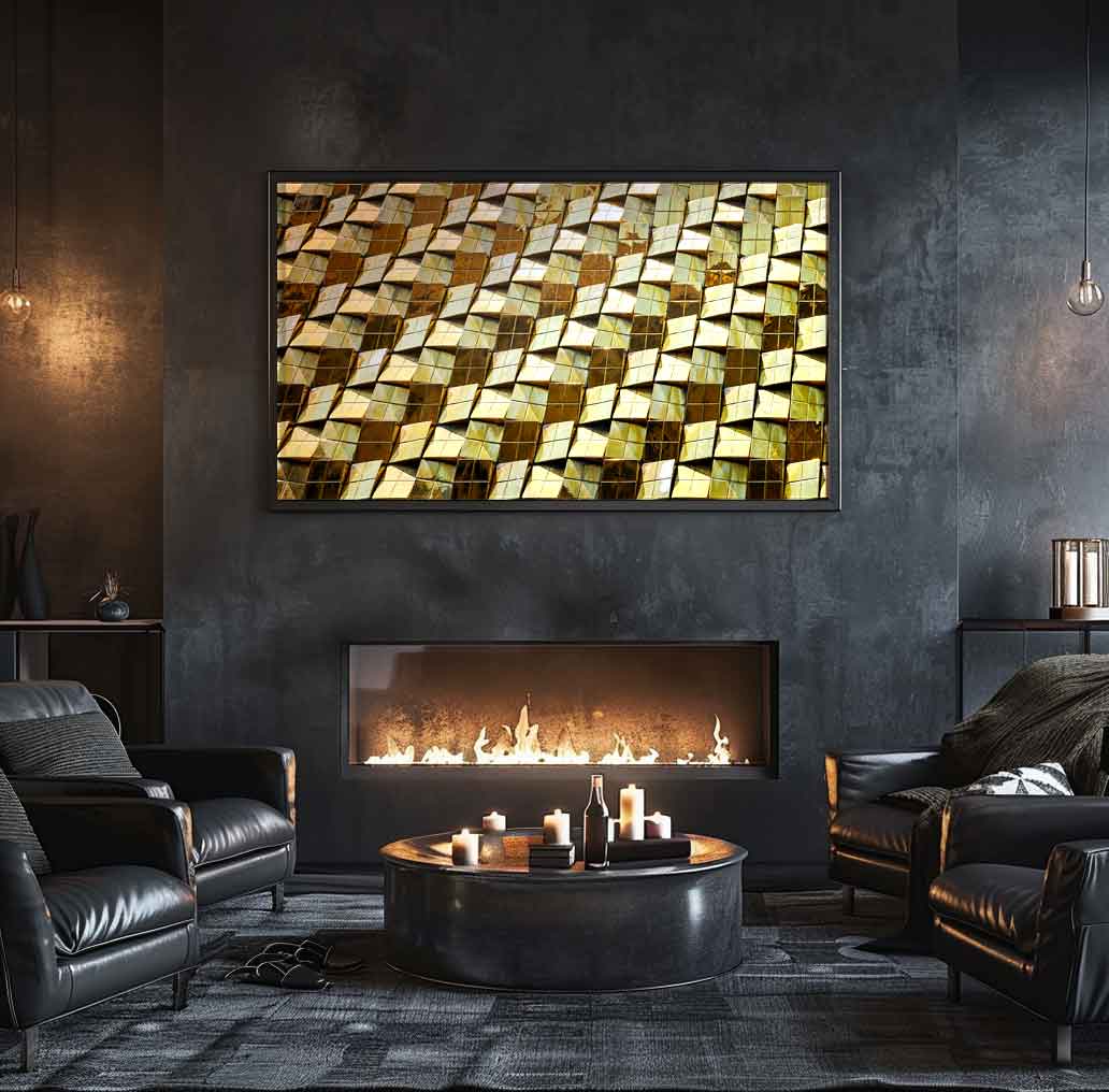 Pared de cubos dorados que reflejan la luz